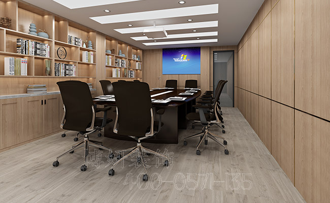 办公室会议室采用了木制结构,木制结构的好处就是能给办公室净化空气,并且增加几分清新自然的气息。