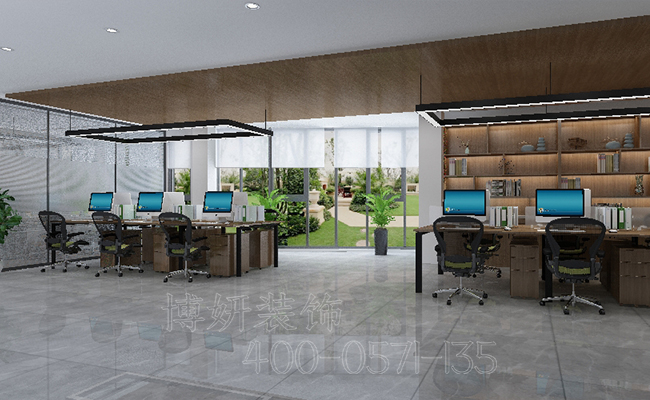 办公室呈现的是开放式办公室,可以方便员工们的交流,加强沟通,大扇的落地窗还可以观察到窗外的景色,使上班的人们心情都会比较愉悦。